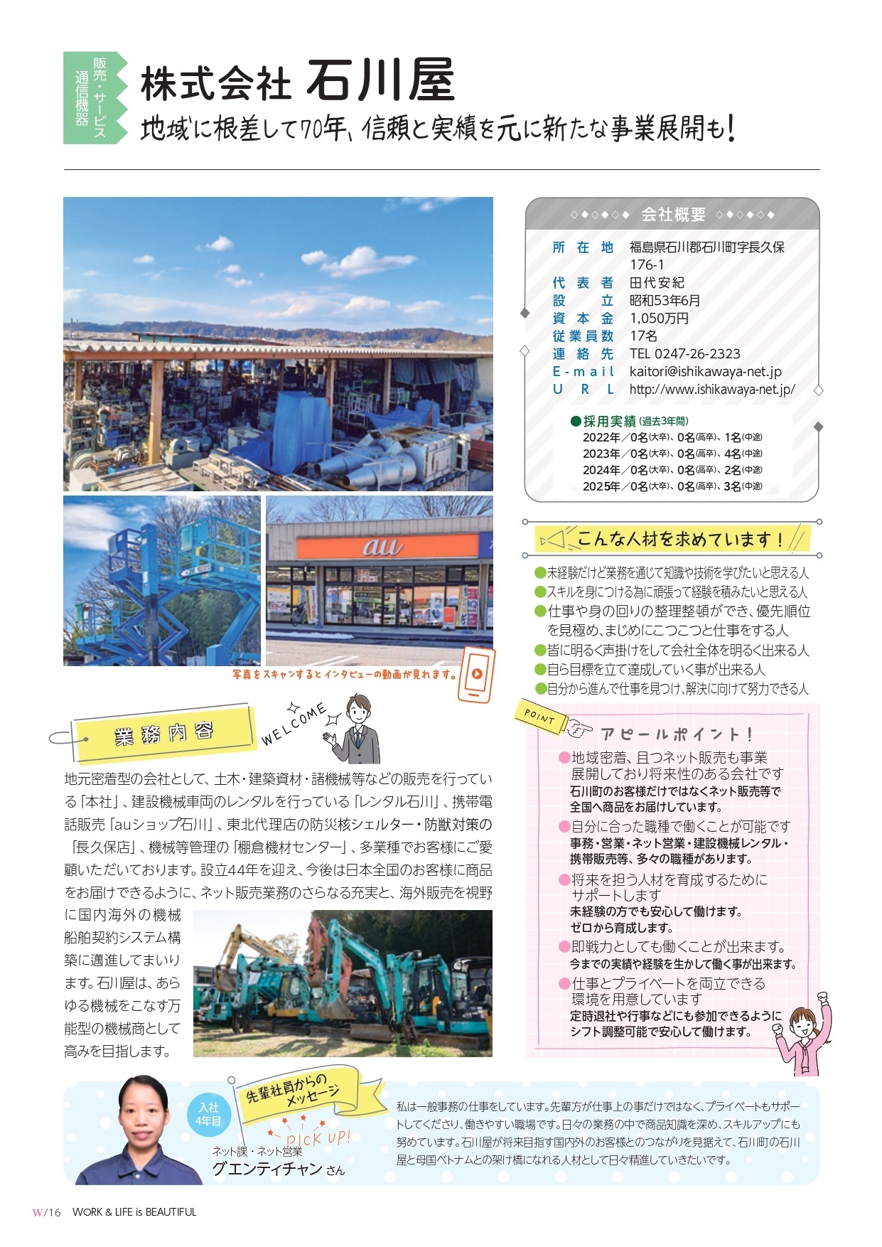 事業内容 土木建設資材鋼材管材、建設機械電動工具道具販売、アスファルト舗装、ガードレール施工